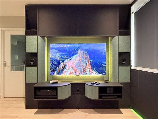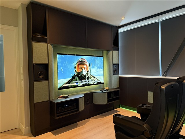 Door bovenvernoemde aanpassingen wordt het geluid dat door de speakers van het Dolby Atmos systeem in deze ruimte wordt afgespeeld nu met minimale kleuring door onze oren waargenomen, waarbij de bastonen kort, strak en duidelijk worden ervaren.
