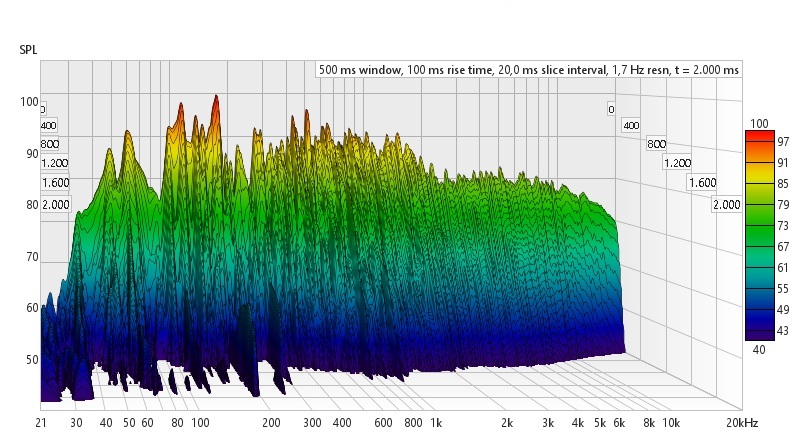 Om te kunnen bepalen wat voor akoestische aanpassingen nodig waren werd eerst een akoestische meting in de lege ruimte uitgevoerd. Aan de hand van de uitkomsten van deze meting werd berekend wat voor akoestische aanpassingen op welke frequentiegebieden nodig waren. Er werd besloten de volgende elementen voor de ruimte te produceren: